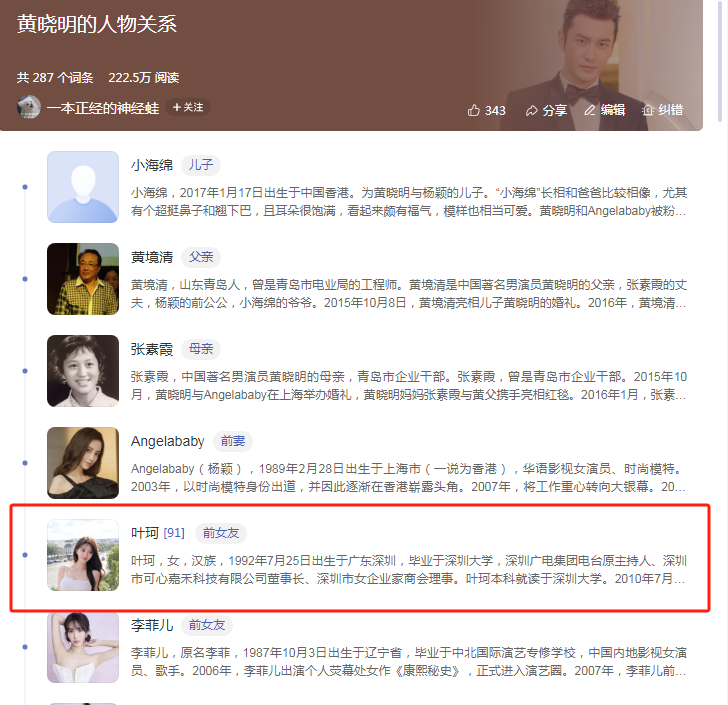 皇冠体育娱乐城无人不晓,百度百科向来标榜严肃严谨,诚然有一部分网友也有剪辑百度百科的权限,但门槛相对较高,百度百科的履行并非统共网友齐有剪辑权限,何况就算剪辑了,修改的履行也会进程多重审核。叶珂在黄晓明的百度百科里形成“前女友”,表现百度平台应该掌捏了确切、可靠的信息源,能够充判辨说黄晓明和叶珂还是远隔,这也意味着,赢得百度盖印认证之后,黄晓明和叶珂确乎还是远隔了。